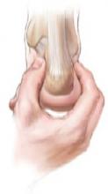 Patients typically have no swelling, skin changes, erythema, or other local abnormalities.8 The most characteristic distinguishing feature on physical examination is exquisite pain produced on medial and lateral compression (“squeezing”) of the heel at the site where the calcaneal apophysis attaches to the main body of the os calcis. The pain is not on plantar pressure (as you would see with plantar fasciitis), or posterior, retrocalcaneal, or adjacent to the Achilles tendon (as you would see on Achilles tendinitis), but on medial and lateral compression.3