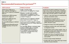 A macrolide antibiotic is generally used to treat pertussis (TABLE 4).25-30 Consider starting treatment before lab results are