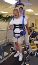 The locomotor program consisted of treadmill walking with the patient’s body weight fully or partially supported by a harness. As patients progressed, the harness supported less and less of their weight, until they were able to walk on the treadmill independently. This required two or three therapists for every patient.
