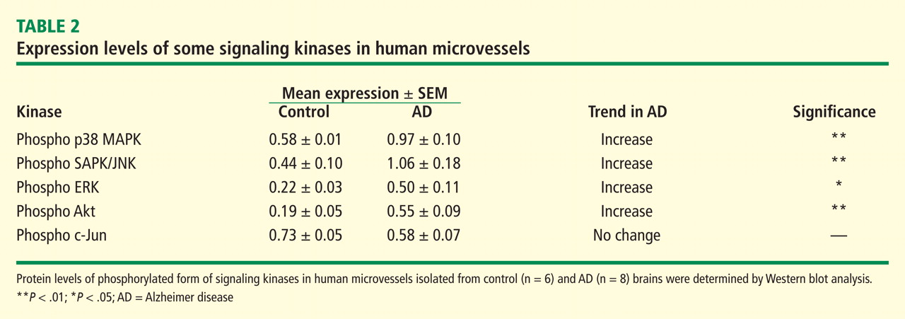 Preliminary experiments in our laboratory show that pharmacologic blockade of vascular activation improves cognitive function in an animal model of AD. Thus, “vascular activation” could be a novel, unexplored therapeutic target in AD.