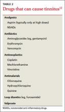 Many different types of medications and substances can have ototoxic effects, mainly on the cochlear hair cells (TABLE 2).12 The damage may be reversible or irreversible. When doing so would be clinically prudent, consider tapering a patient off a drug that may be causing tinnitus.7
