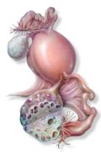 PCOS (also known as Stein-Leventhal syndrome) is associated with features of insulin resistance (obesity, acanthosis nigricans); hyperandrogenism (hirsutism, elevated androgen levels), and oligomenorrhea leading to anovulatory bleeding and infertility. PCOS has a prevalence of approximately 5% to 10% in women of reproductive age. Patients may have high serum concentrations of androgenic hormones, such as testosterone, androstenedione, and dehydroepiandrosterone sulfate (DHEAS). However, much variation exists clinically and a specific patient may have normal androgen levels.3 In addition, despite the syndrome’s name, not all women with PCOS have ovarian cysts.