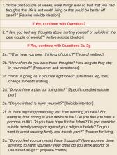 42. Frierson RL, Melikian M, Wadman PC. Principles of suicide risk assessment: how to interview depressed patients and tailor treatment. Postgrad Med 2002;112:65-66,69-71.