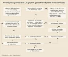 Recently, to capture a more clinically relevant definition, the American College of Gastroenterology’s Chronic Constipation Task Force described constipation as a symptom-based disorder characterized by unsatisfactory defecation—infrequent stool or difficult stool passage, including straining, incomplete evacuation, hard/lumpy stool, increased time to passing stool, use of manual maneuvers, or sense of difficulty passing stool (TABLE 1).4