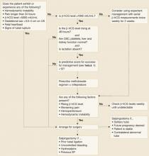 In the multidose regimen, IM injections of 1 mg/kg of methotrexate are given followed by leucovorin (0.1 mg/kg) after 24 hours. β-hCG levels are checked every other day until there is a 15% or more drop on 2 consecutive days, or 4 doses of methotrexate are administered.1 β-hCG levels are then repeated weekly until undetectable. About half of the women receiving the multidose regimen require 4 or more doses (6.8% require >4 doses). On the other hand, 10% of women treated with this regimen require only 1 dose. Multidose methotrexate has also been used as first-line therapy in cervical, interstitial, ovarian, and abdominal gestation, but with substantially lower success.19
