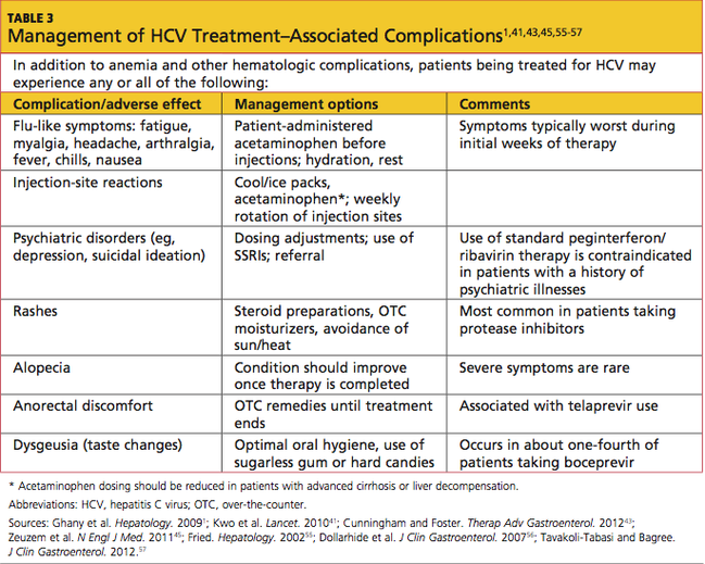 55. Fried MW. Side effects of therapy of hepatitis C and their management. Hepatology. 2002;36(5 suppl 1):S237-S244.
