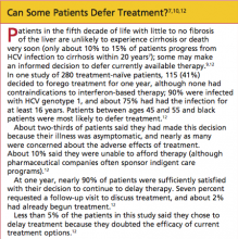 56. Dollarhide AW, Loh C, Leckband SG, et al. Psychiatric comorbidity does not predict interferon treatment completion rates in hepatitis C seropositive veterans. J Clin Gastroenterol. 2007;41(3):322-328.